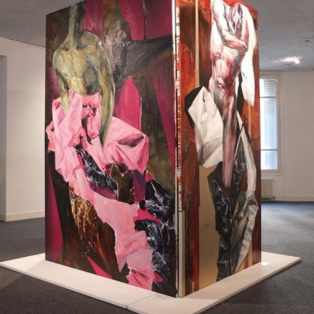 I think when I start to be proud of my work I might begin to “die” professionally. I prefer to call it affection. The series I am fondest of is “Piece of material” about the lost meaning of words and texts. Parts of bodies are pulled out from flaps of fabric. What is a “piece of material” in this case? Is it the human flesh, a piece of cloth, a piece of art, as the material embodiment of the underworld, or the canvas itself? Individuality of consciousness deprives the word of a single sense. It is only a " ghost of square" by Bacon. Juggling meanings leads from the universe to a piece of cloth, which, in essence - a rag.