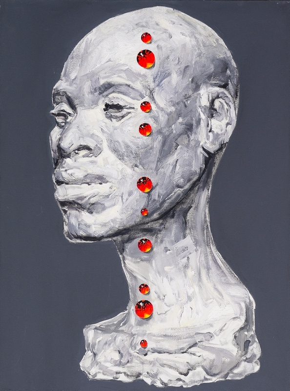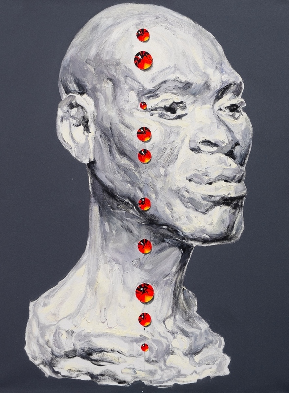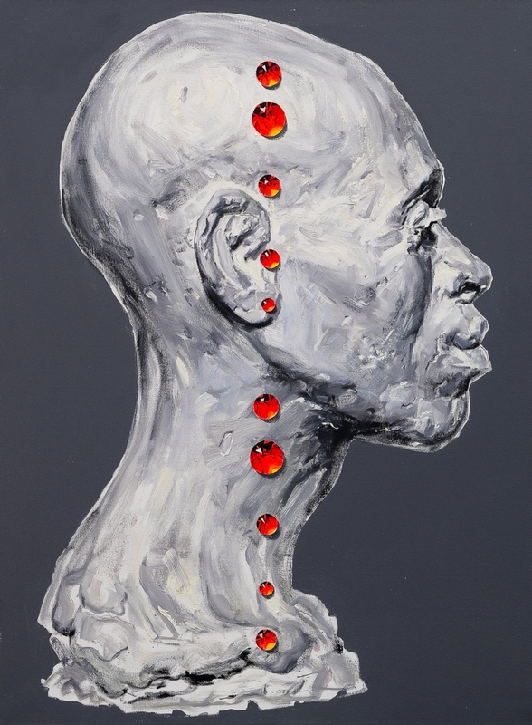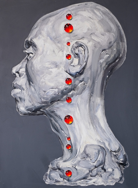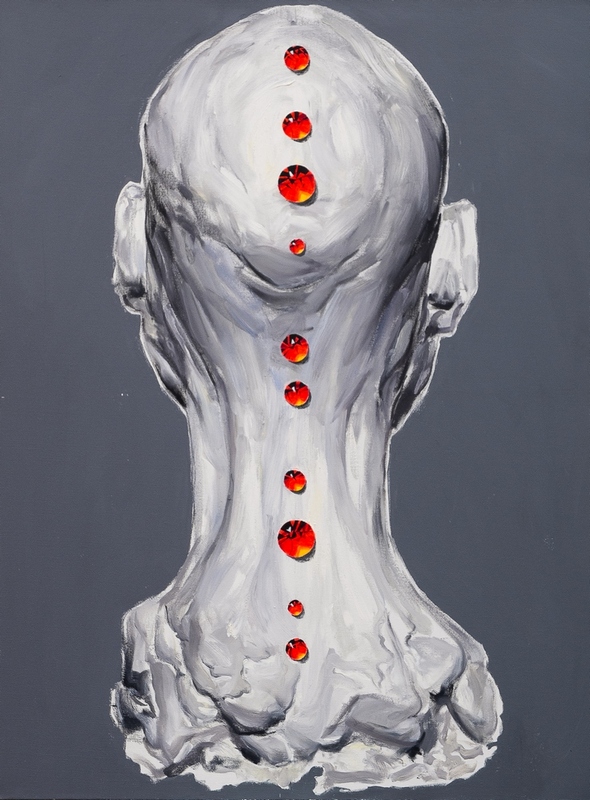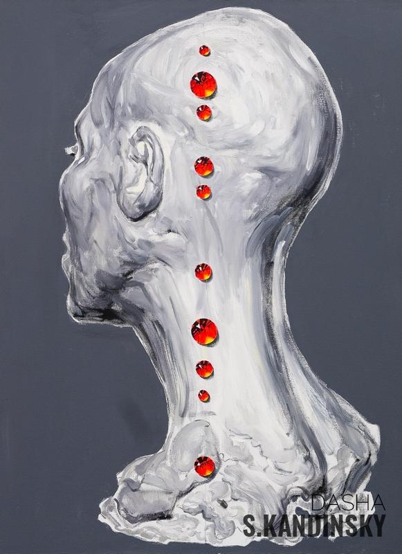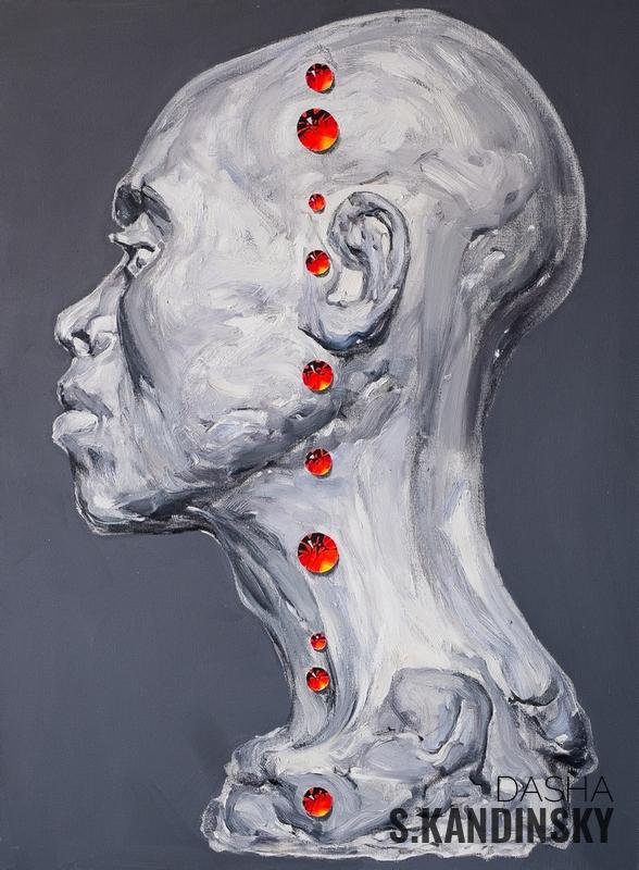 Visual range is the rank of plaster heads (painting) each of which is encrusted with bloody rubies (they are also arranged in a lines).