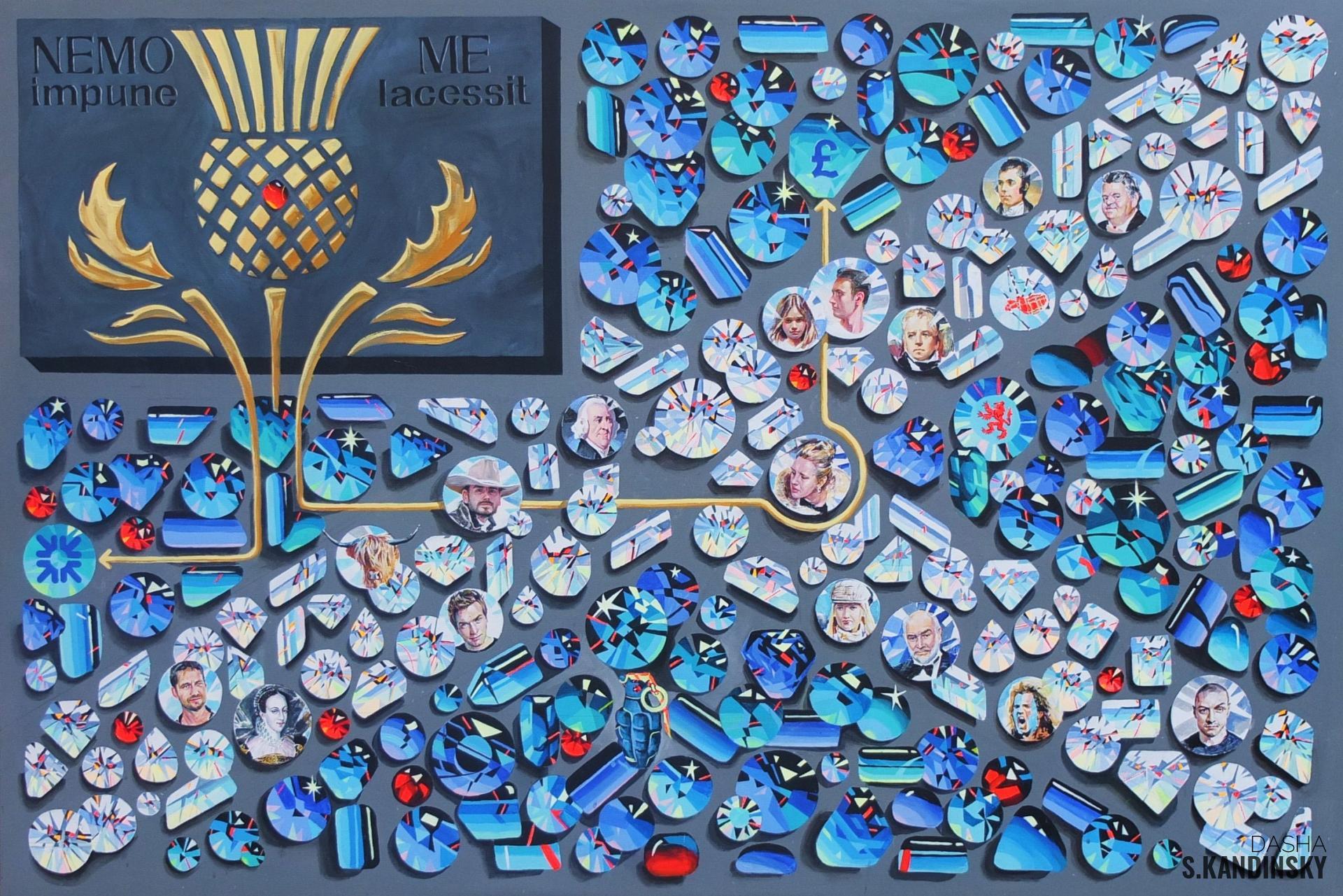 Gemism takes it’s roots from Impressionism, abstractionism, suprematism and surrealism. Key feature of a new style is the play of color produced by gemstones, which provides a new aesthetics to visualization and viewer’s perception. It resembles the kaleidoscope with it’s ability to infinitely generate new effects that move with the speed of visual information around us.